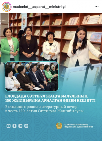 Елордада Сәттіғұл Жанғабылұлының 150 жылдығына арналған әдеби кеш өтті. ҚР Ұлттық ...