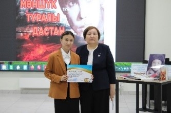 23 апреля в честь 100-летия Героя Советского Союза Алии Молдагуловой и 80-летия Великой Победы совместно с Актюбинской областной юношеской библиотекой им.Саги Жиенбаева прошло онлайн мероприятие. В ходе мероприятия был рассказан героический путь Алии Молдагуловой. Двоюродная сестра Алии Молдагуловой Азария Бисембаевна поделилась воспоминаниями и подарила возможность в  онлайн формате посетить нашим читателям музей им. А. Молдагуловой.  Цель мероприятия: приобщение молодого поколения к патриотизму, мужеству, верности родине. Формирование чувства национального патриотизма; воспитание защиты страны, земли, укрепления мира во всем мире.